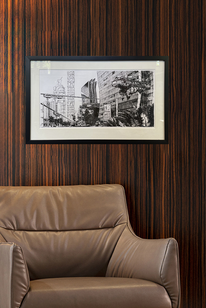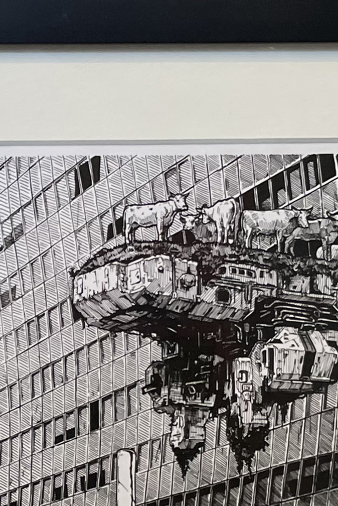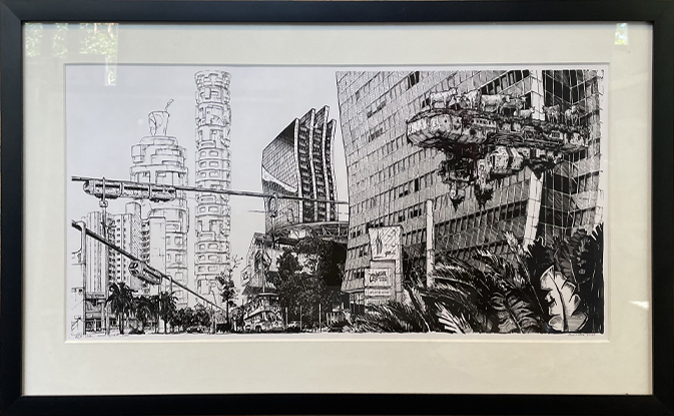 Esta obra es una representacion del artista sobre como ve el futuro de Asunción.