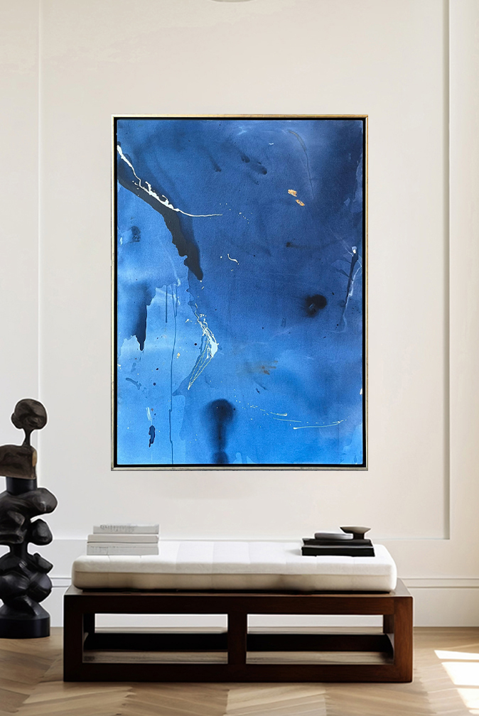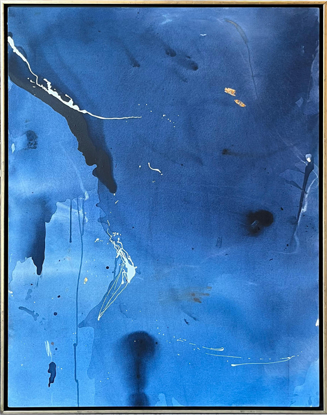 Obra hecha sobre lienzo utilizando pintura acrílica, pan de oro con imitación oxidado, óleo y tiza pastel.