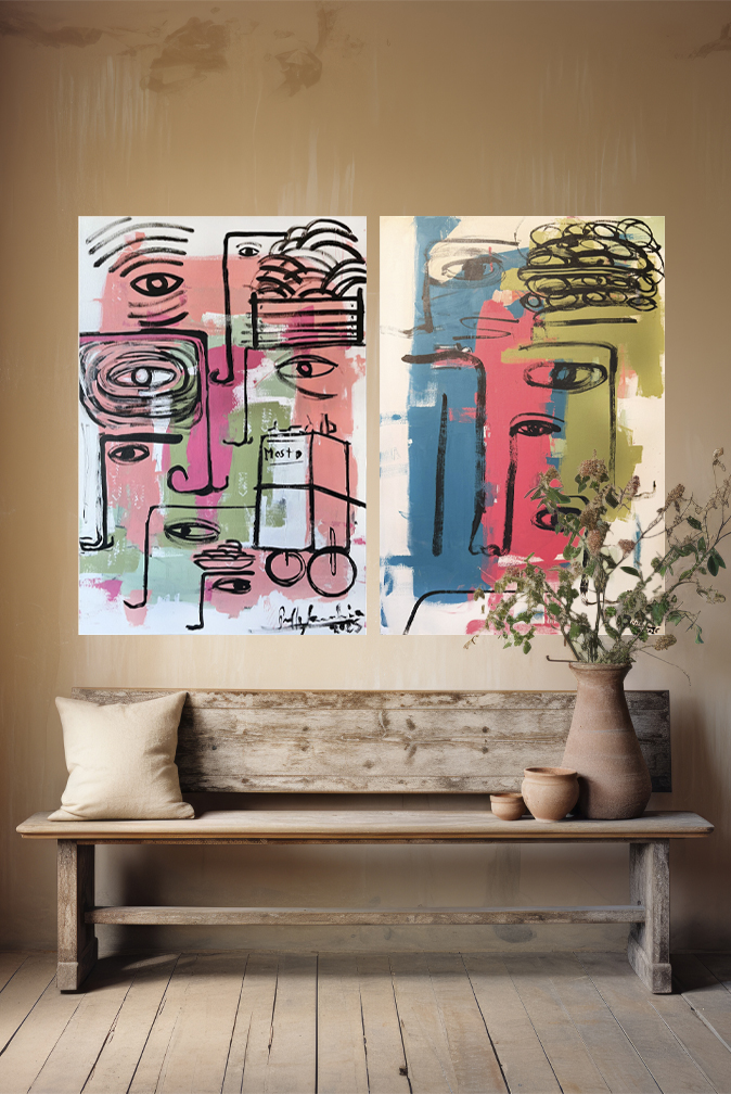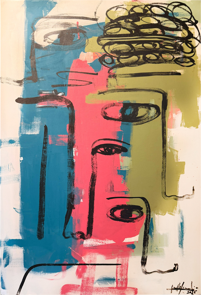 Obra hecha sobre lienzo con técnica mixta, pertenece a la colección "Mujeres"