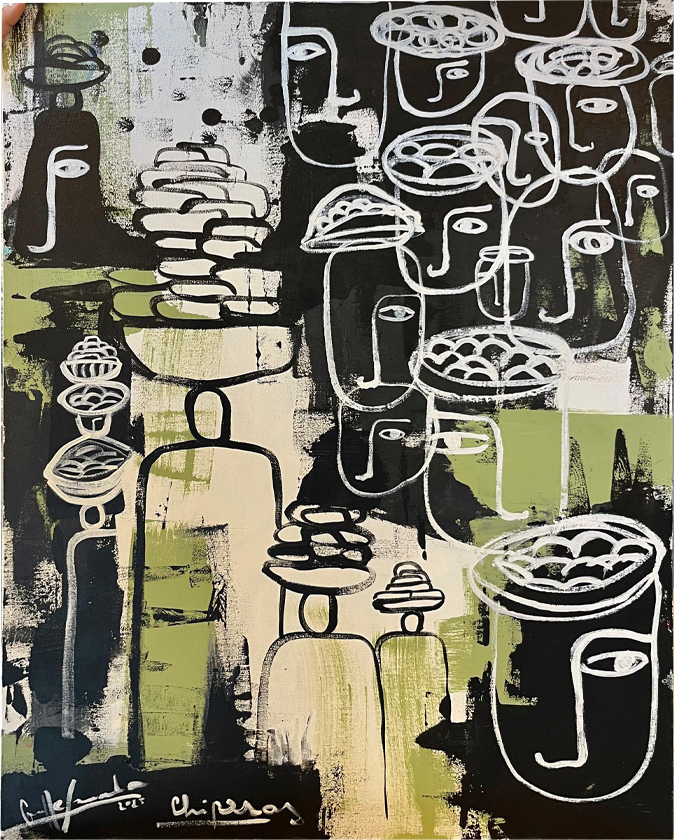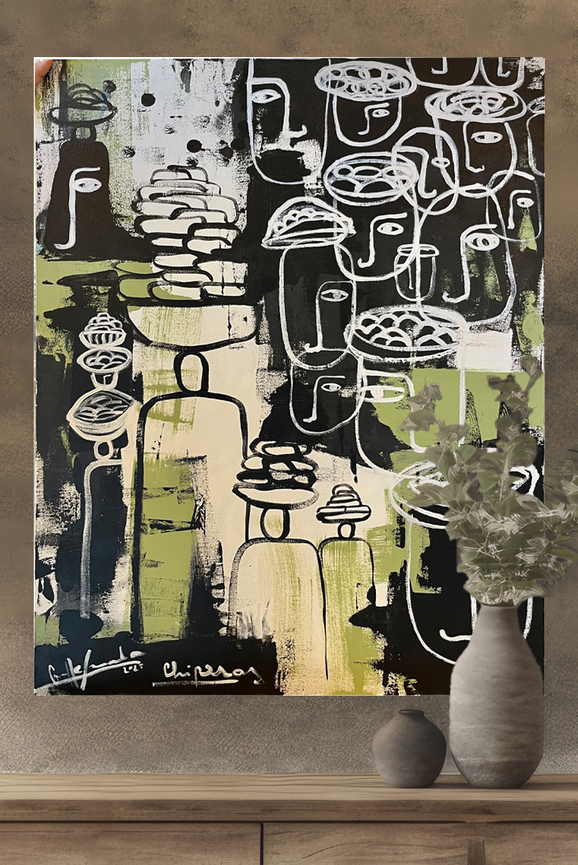 Obra hecha sobre lienzo con técnica mixta, pertenece a la colección "Mujeres"