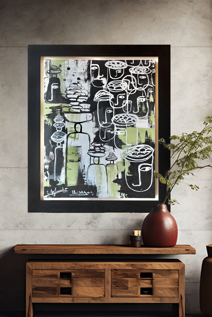 Obra hecha sobre lienzo con técnica mixta, pertenece a la colección "Mujeres"