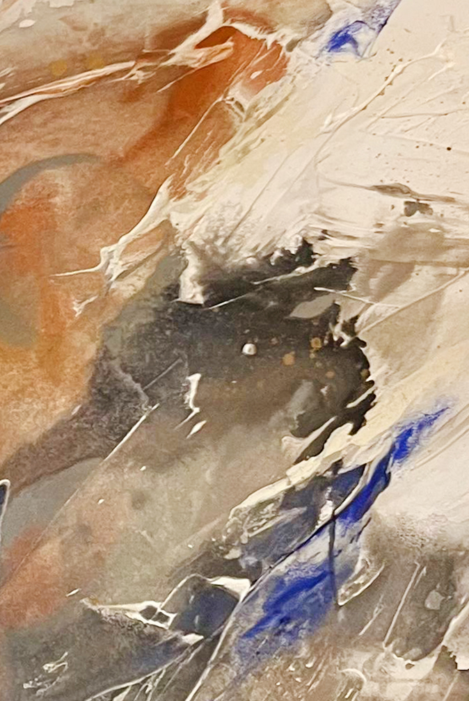Obra hecha con Gesso, pintura en aerosol y pastel oleoso sobre lienzo.