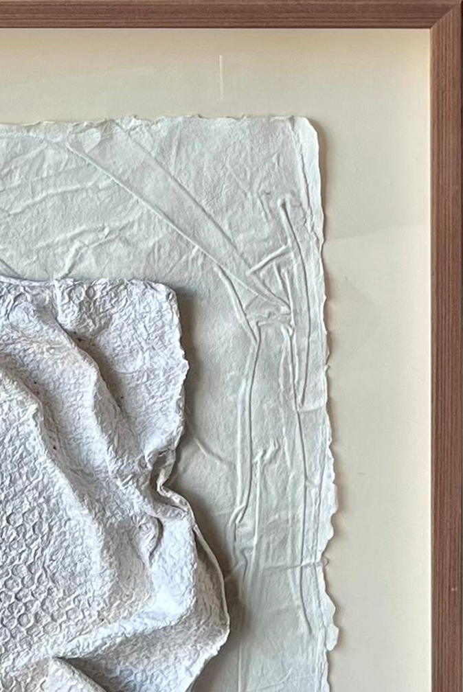 Obra hecha con papel de base de algodón 100 %, con ensobrado natural de tela. Hoja dura superpuesta, elaborada con pulpa de algodón puro y almidones para endurecer.