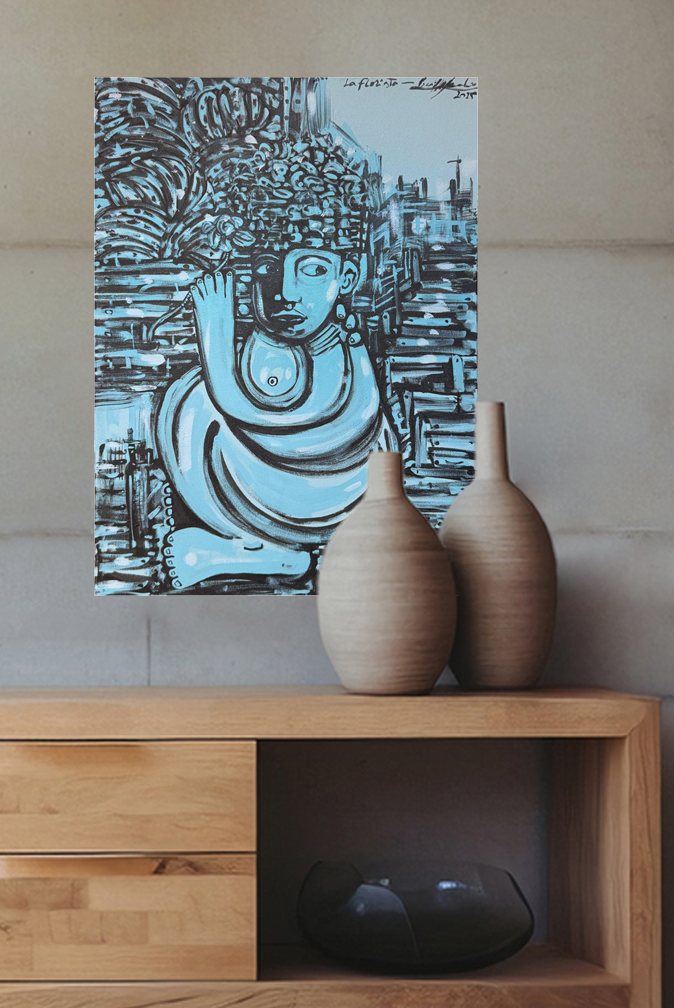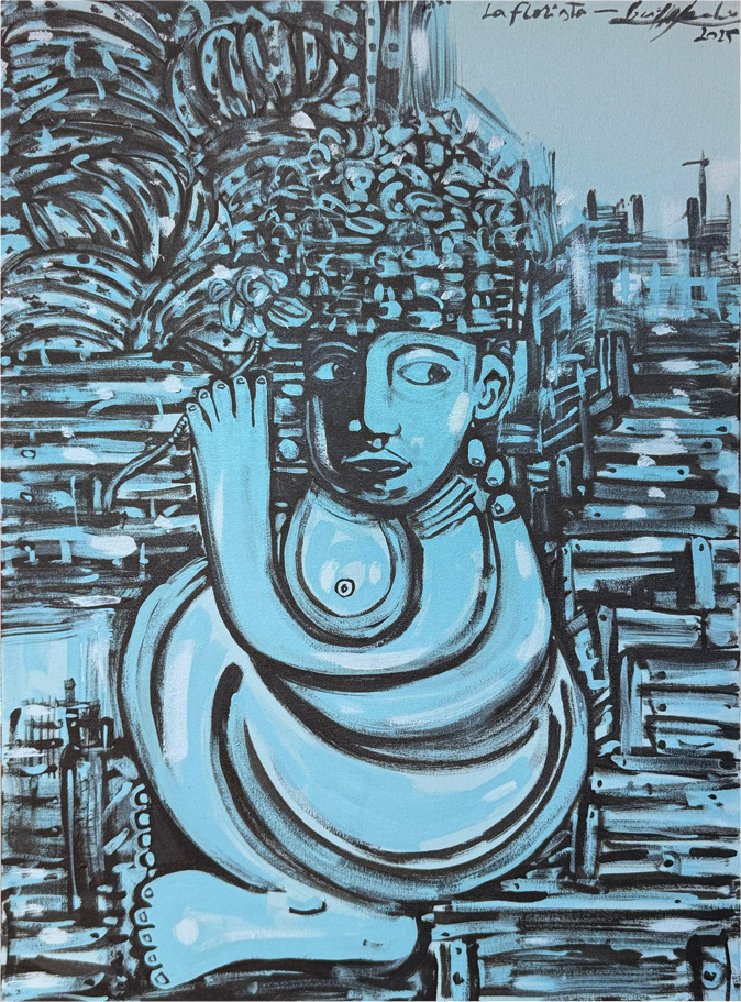 Obra hecha sobre lienzo con técnica mixta, pertenece a la colección "Mujeres"