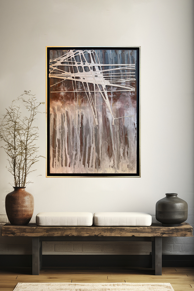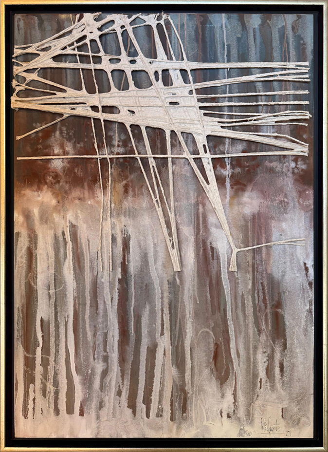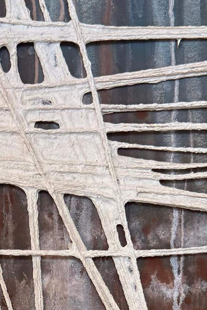 Obra hecha con yeso, pigmentos naturales blancos terracota y bordo, pulpa de agodón, oxidos, carbonilla, dorado y pintura gouach.