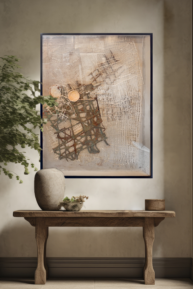 Trama abierta de pulpa de algodón, dan lugar a dos espacios bien marcados, divididos entre otros buscan un orden dentro de una armonía establecida.