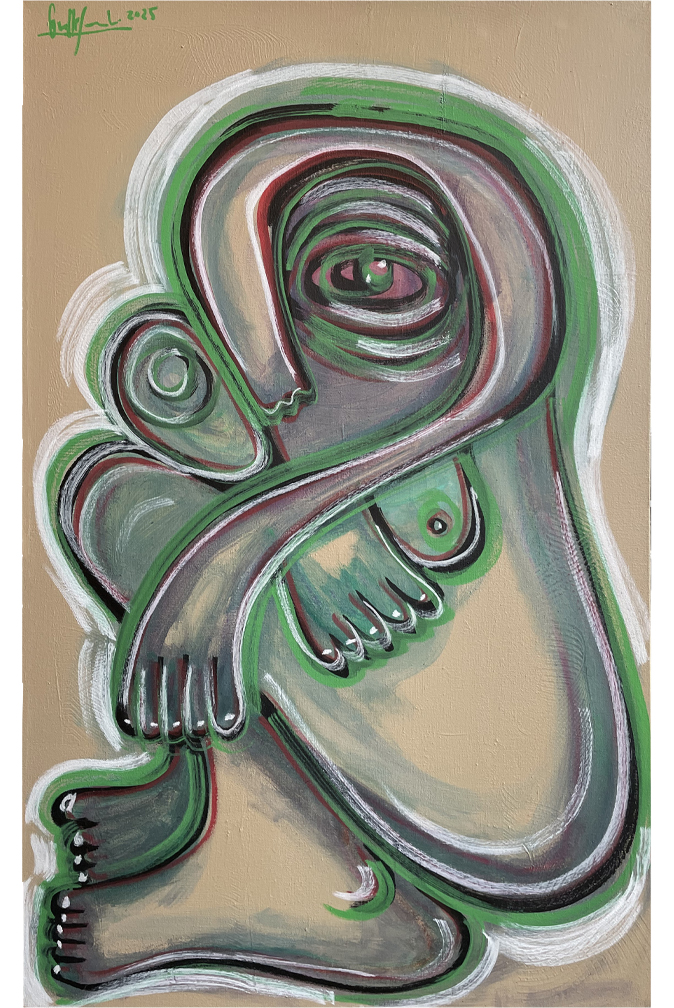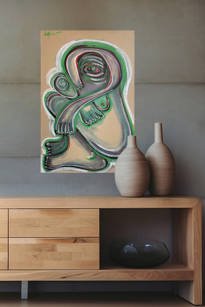 Obra hecha sobre lienzo con técnica mixta, pertenece a la colección "Mujeres"