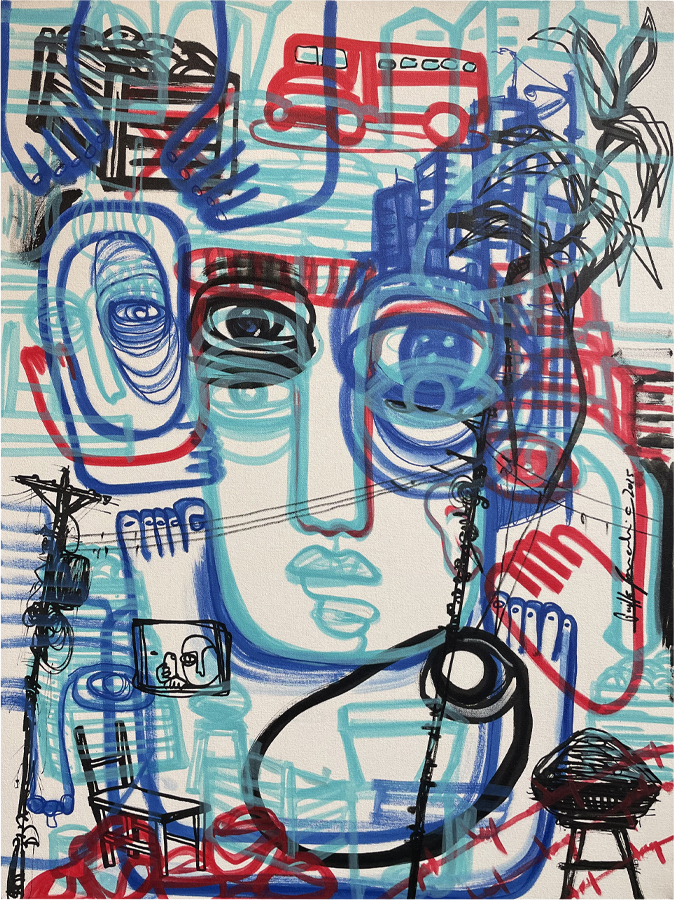 Obra hecha sobre lienzo con técnica mixta, pertenece a la colección "Paisajes urbanos"