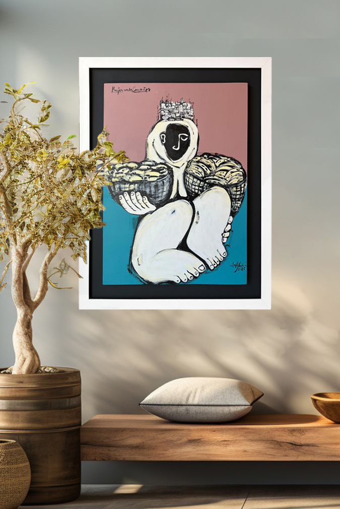 Obra hecha sobre lienzo con técnica mixta, pertenece a la colección "Mujeres"