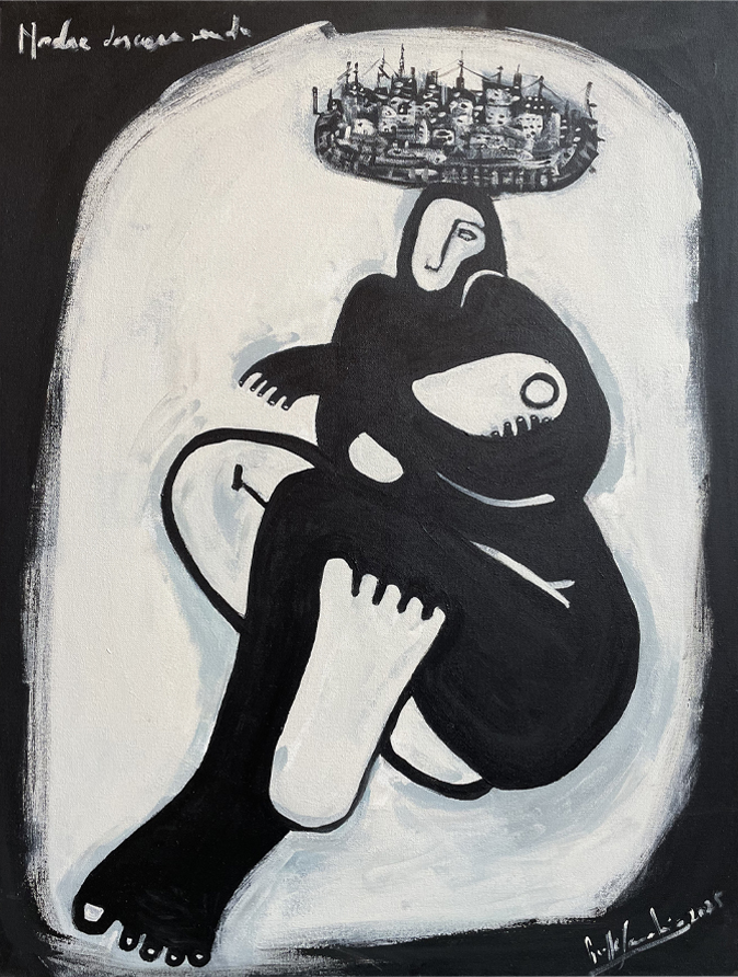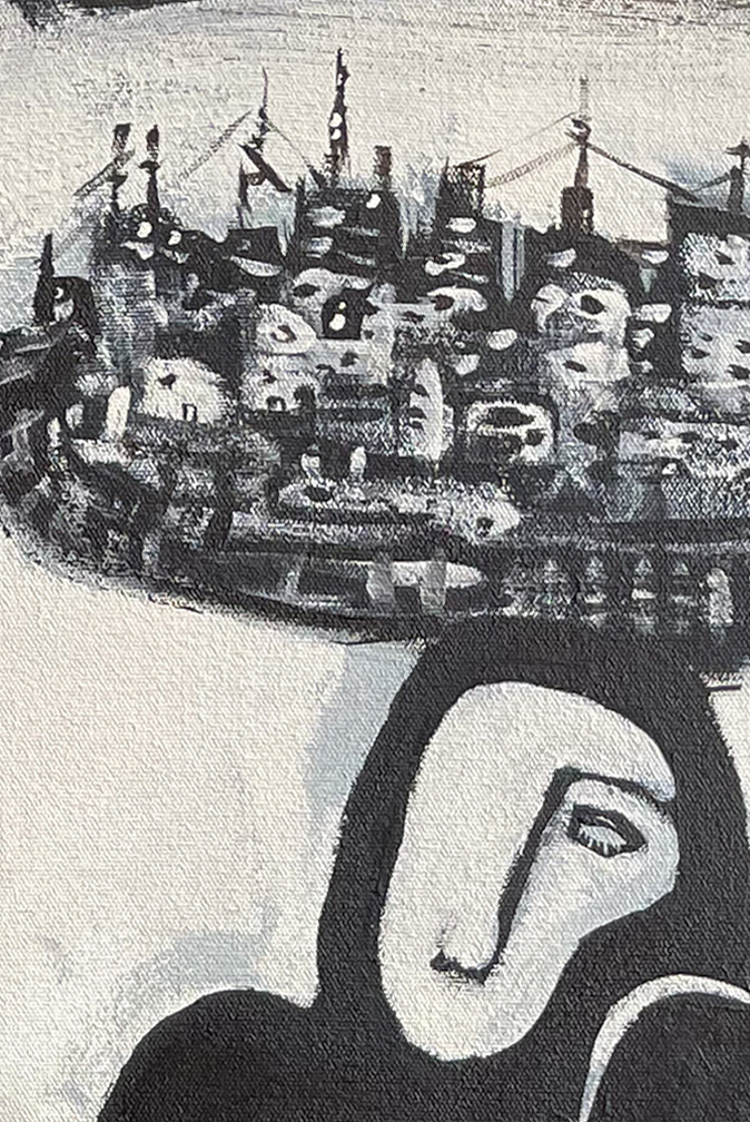 Obra hecha sobre lienzo con técnica mixta, pertenece a la colección "Mujeres"