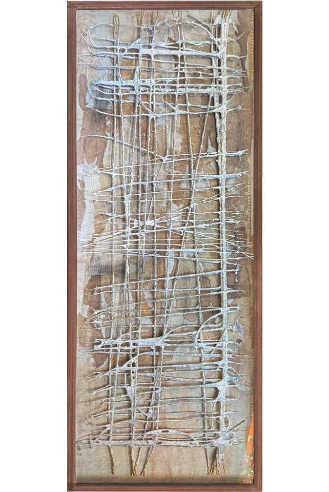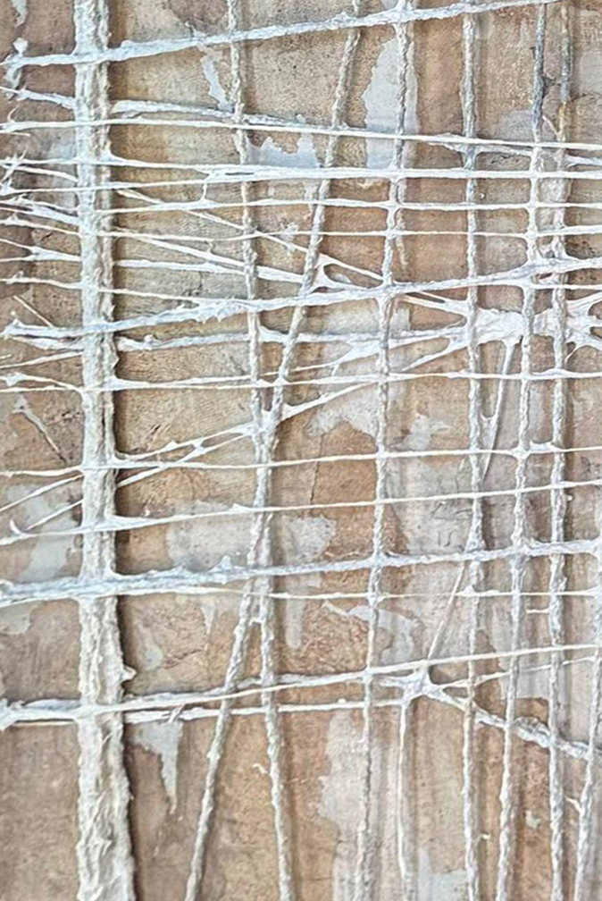 Obra hecha con madera, papeles artesanales hechos a mano con fibra de algodón, pigmentos naturales blancos, oxidos, carbonilla, pintura gouach. Pintura a la tiza. Pulpas de algodon, Karaguata, reciclados y bananero.