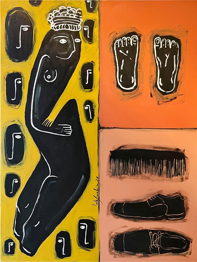 Obra hecha sobre lienzo con técnica mixta, pertenece a la colección "Mujeres"