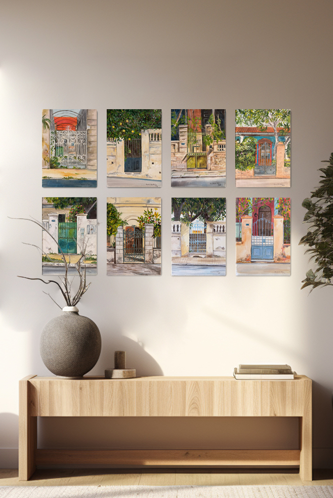 Colección de puertas del centro de Asunción hecha en óleo sobre lienzo.