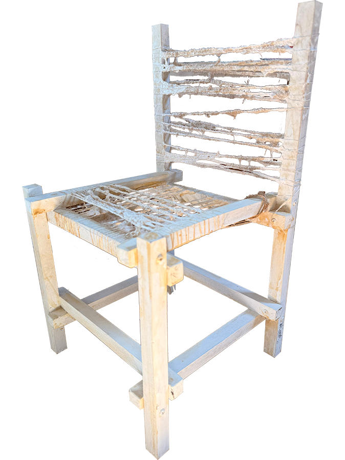 Silla de madera con un estilo Bauhaus, pintada con blanco Amanecer mate, además la trama de la pulpa le da un toque de irrealidad e imposibilidad, el color blanco de la pureza, ideas puras , sencillas. Simples para encontrar un sistema de vida.