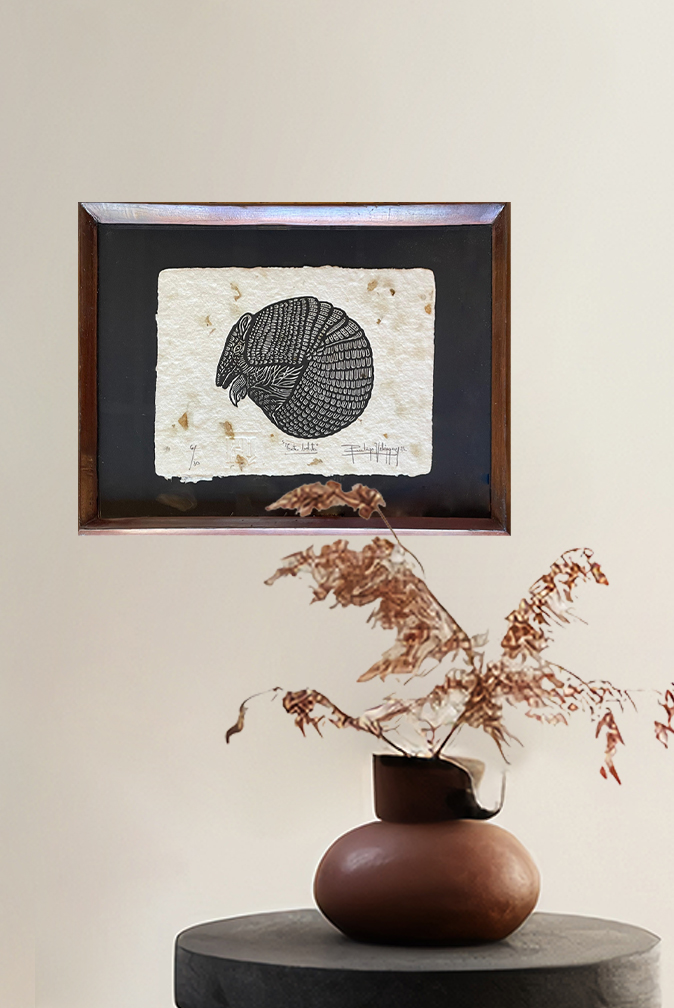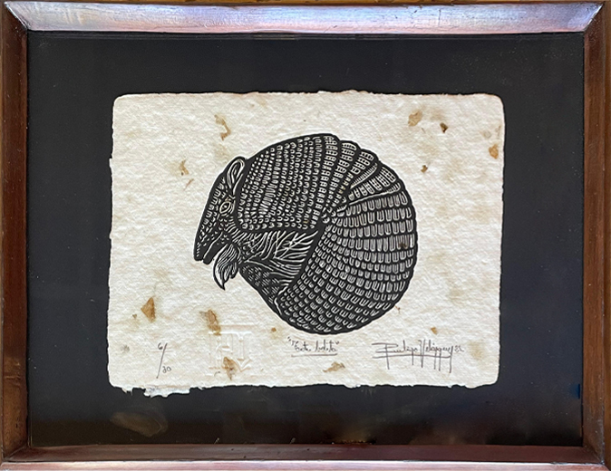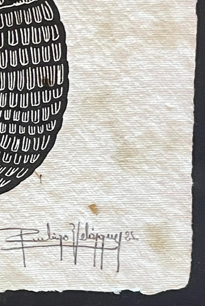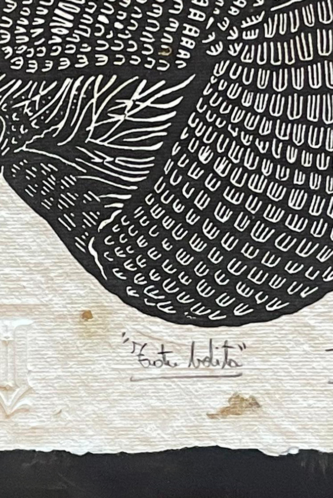 Obra hecha con tinta, con la técnica del grabado sobre papel artesanal.