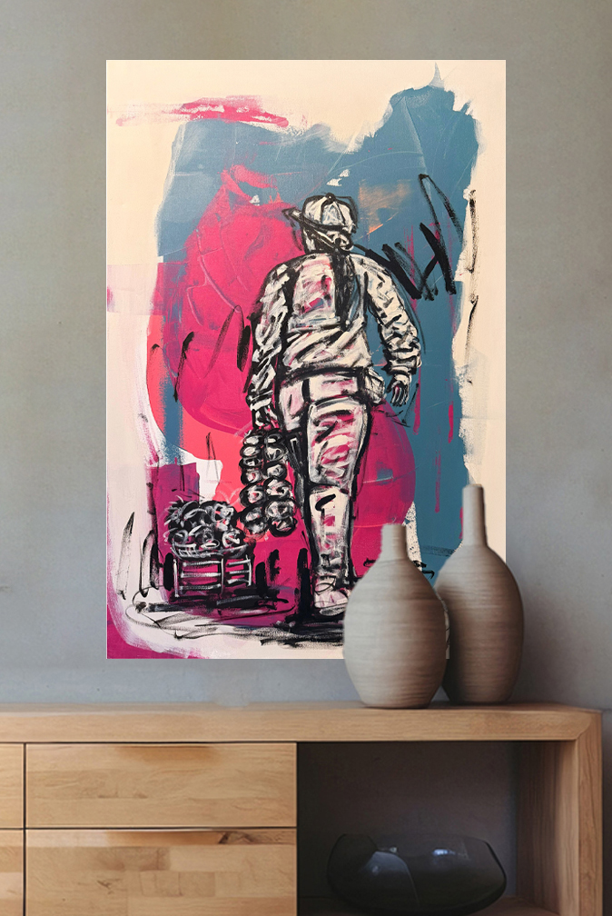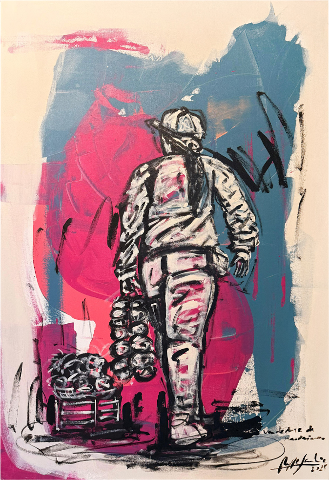 Obra hecha sobre lienzo con técnica mixta, pertenece a la colección "Mujeres"