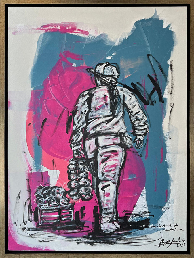 Obra hecha sobre lienzo con técnica mixta, pertenece a la colección "Mujeres"